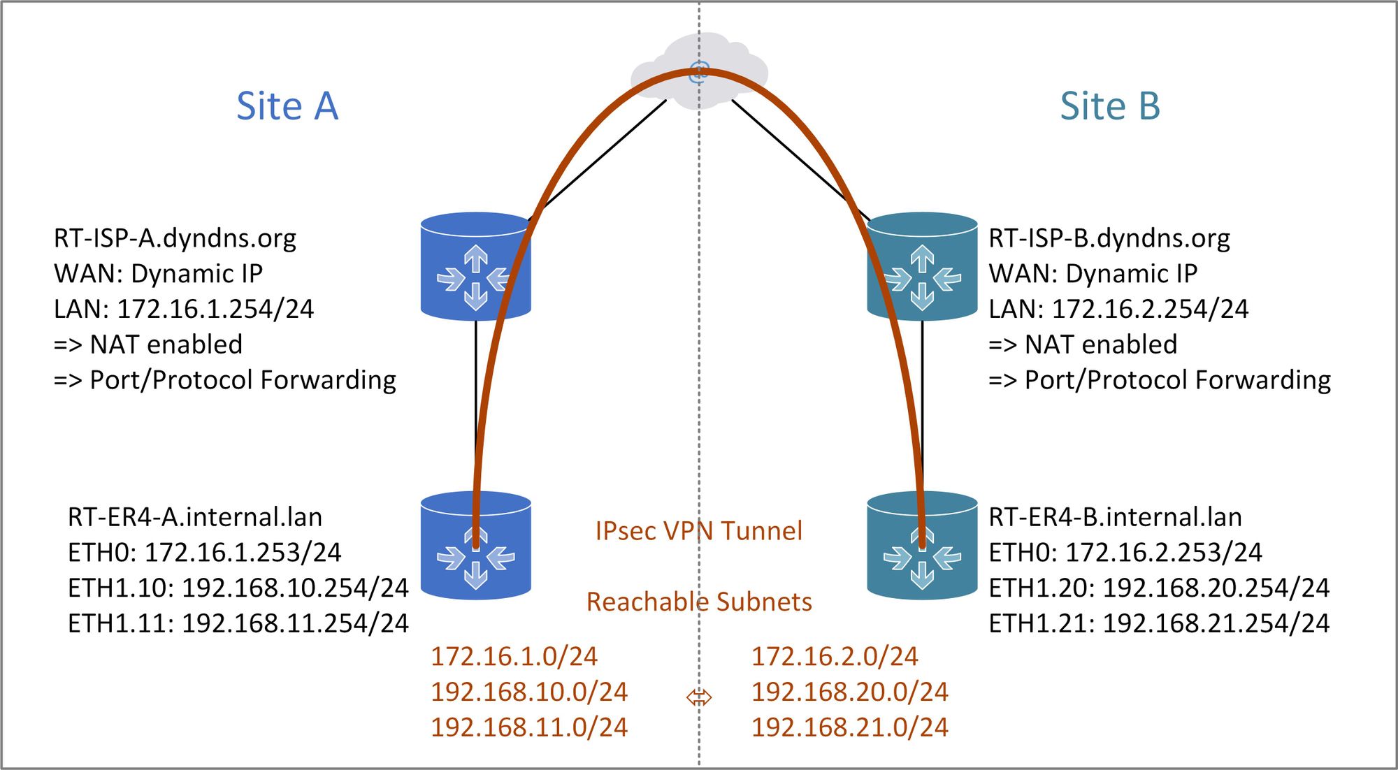 Site to site vpn with an ipsec tunnel and generic routing encapsulation gre. The interesting traffic must be initiated from pc2 for the vpn to come up. At one end we would tell our firewall to connect to the other firewall by specifying its static public ip address and then we would do the same at the other end.